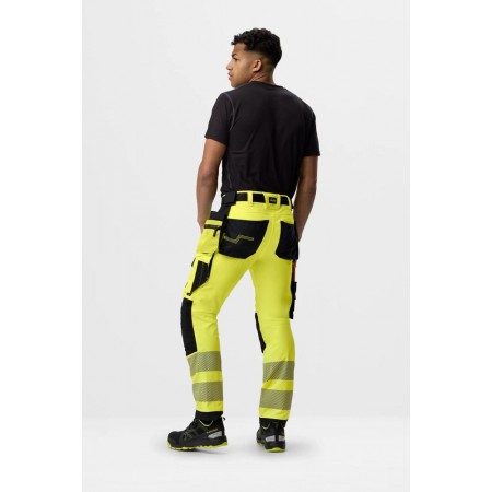 Pantalon haute visibilité stretch 4 directions avec poches holster et renforts CORDURA®, idéal pour conditions exigeantes.